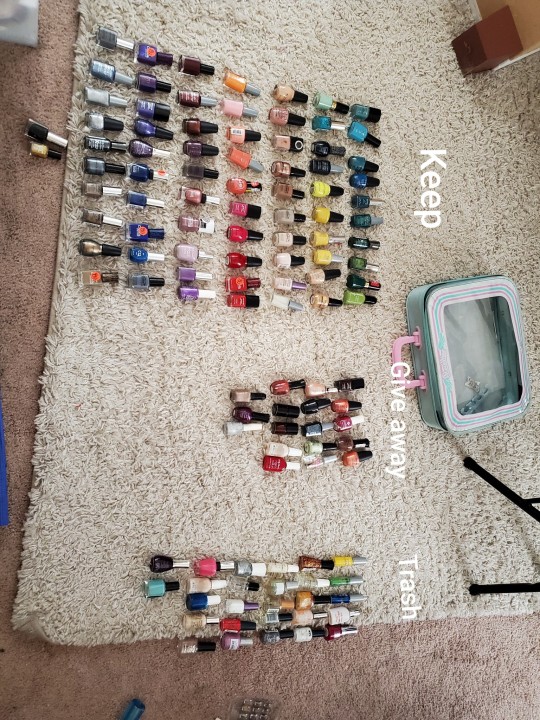 Decluttering progress: Makeup, Fingernail polish, accessories.