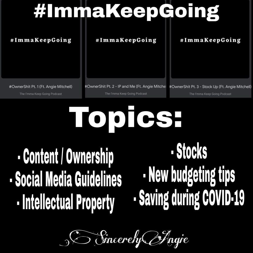 During the month of September, my great friend and mentor Eric Lewis thought that it would be a great idea to have me on 3 episodes to talk about finances!!! Can you believe it? Little ole me! He is the best. So this month, we talked about all things #Ownership , which he decided to call #OwnerSH!T . Visit www.immakeepgoing.com to listen to all 3 episodes. #ImmaKeepGoing