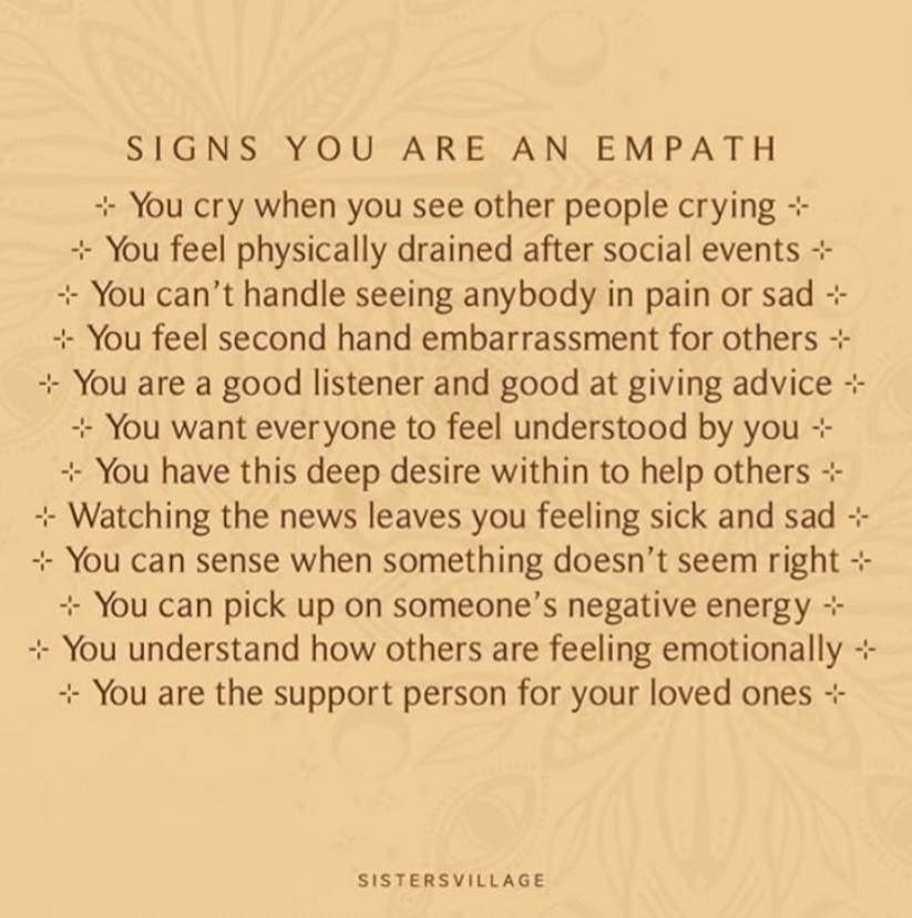 The same way I felt after taking the How We Love test from the Dear Childhood episode is how I felt when I saw the meme on what an empath is. A sense of relief came over me. It feels so good to know that there are others out there that can relate.